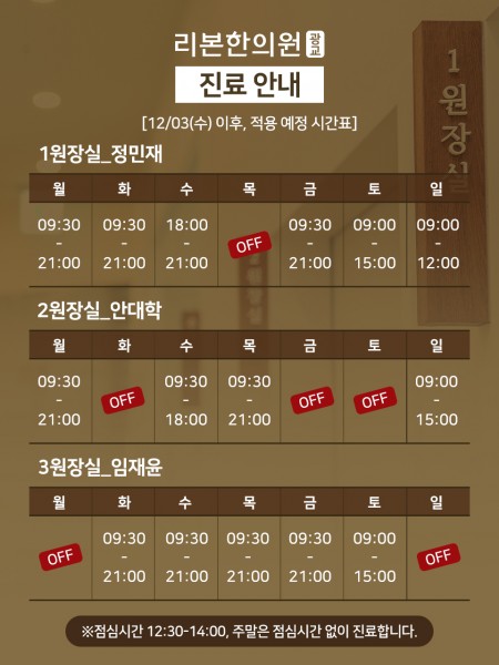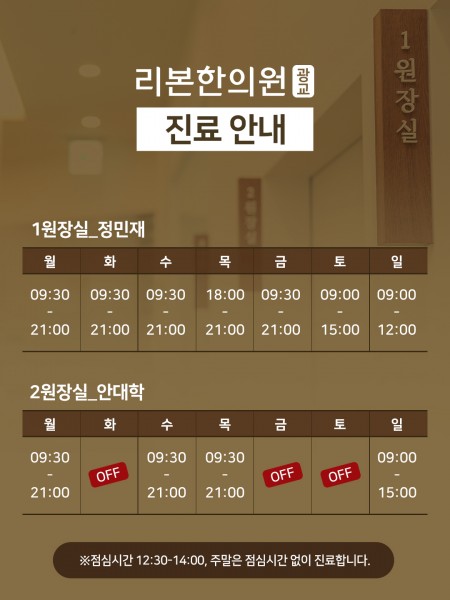 상호 : 광교리본한의원 | 대표자 : 정민재 | 사업자등록번호 : 248-92-01421 | 개인정보관리책임자 : 정민재